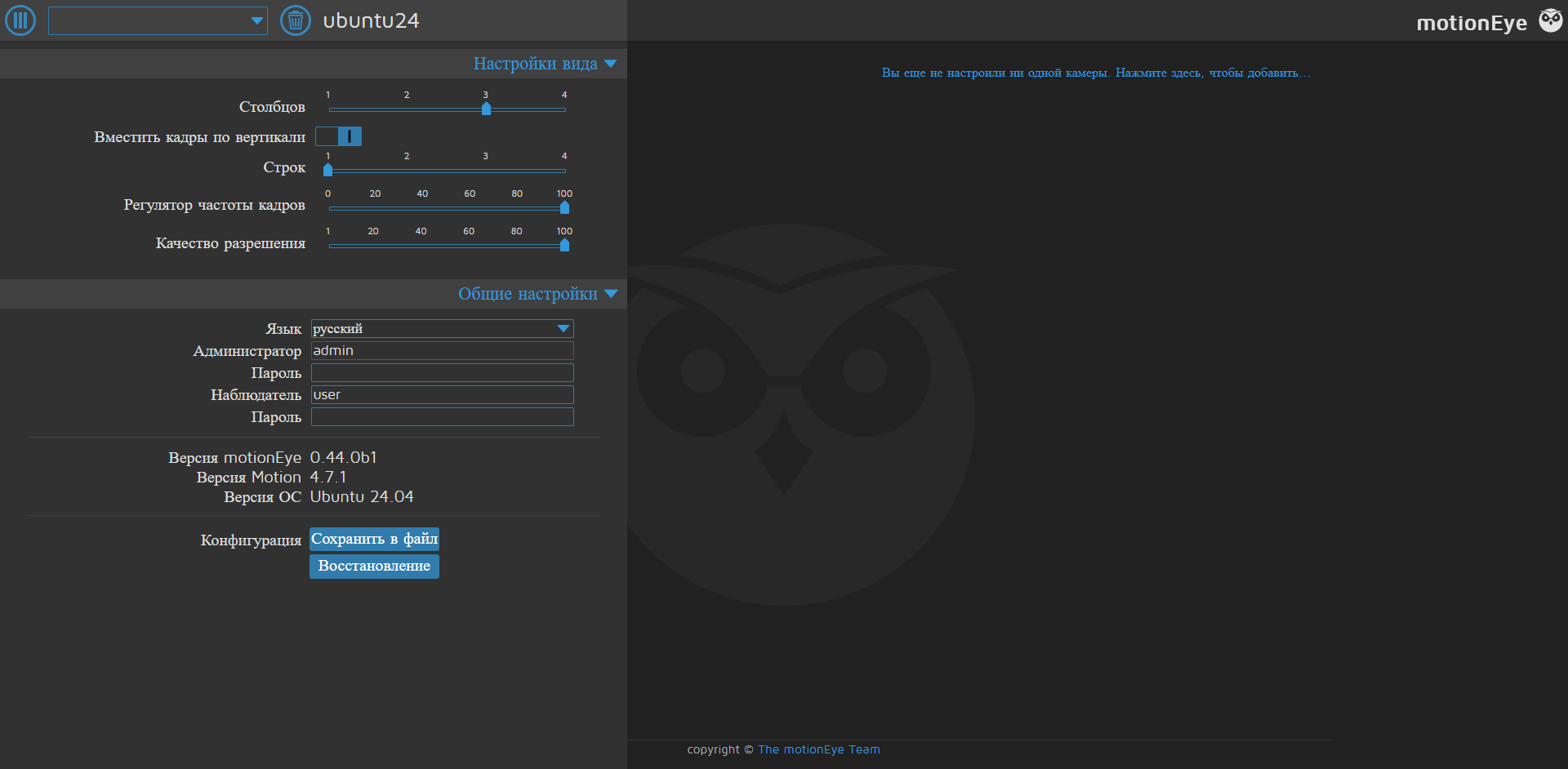 По умолчанию motionEyeOS использует следующие настройки для веб-интерфейса: